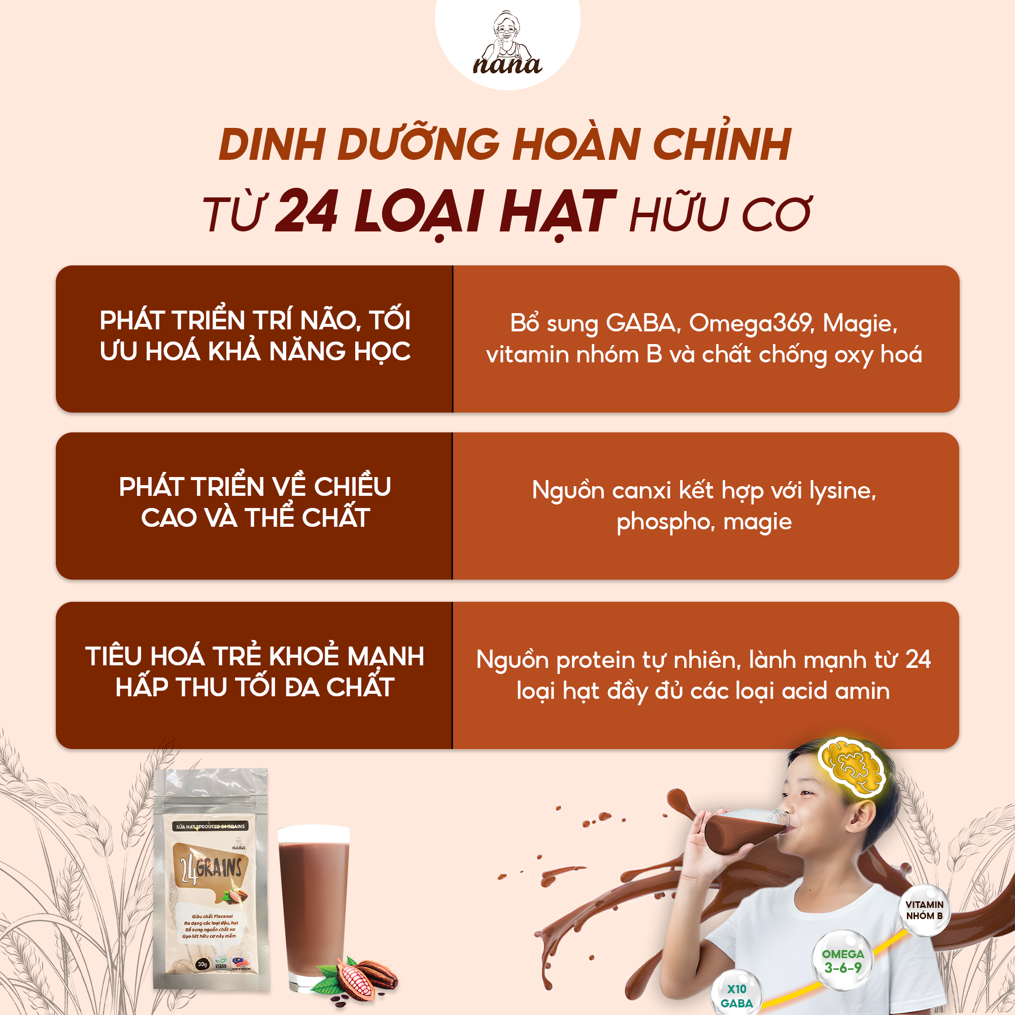 Sữa Gạo Lứt Hữu Cơ Nảy Mầm 24Grains Gói 30g Vị Socola Tự Nhiên Cho Trẻ Từ 3 Tuổi Sữa Hạt Dinh Dưỡng Phát Triển Não Bộ