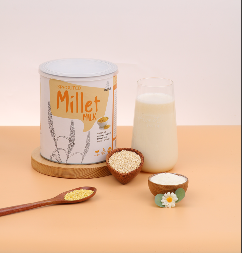 Millet là một sản phẩm sữa thực vật với nguyên liệu chính là thực vật hữu cơ ở dạng nảy mầm giúp tối ưu hóa thành phần dinh dưỡng chứa trong các loại hạt, giúp cơ thể dễ dàng hấp thu và loại bỏ tối đa các chất cản trở hấp thu.