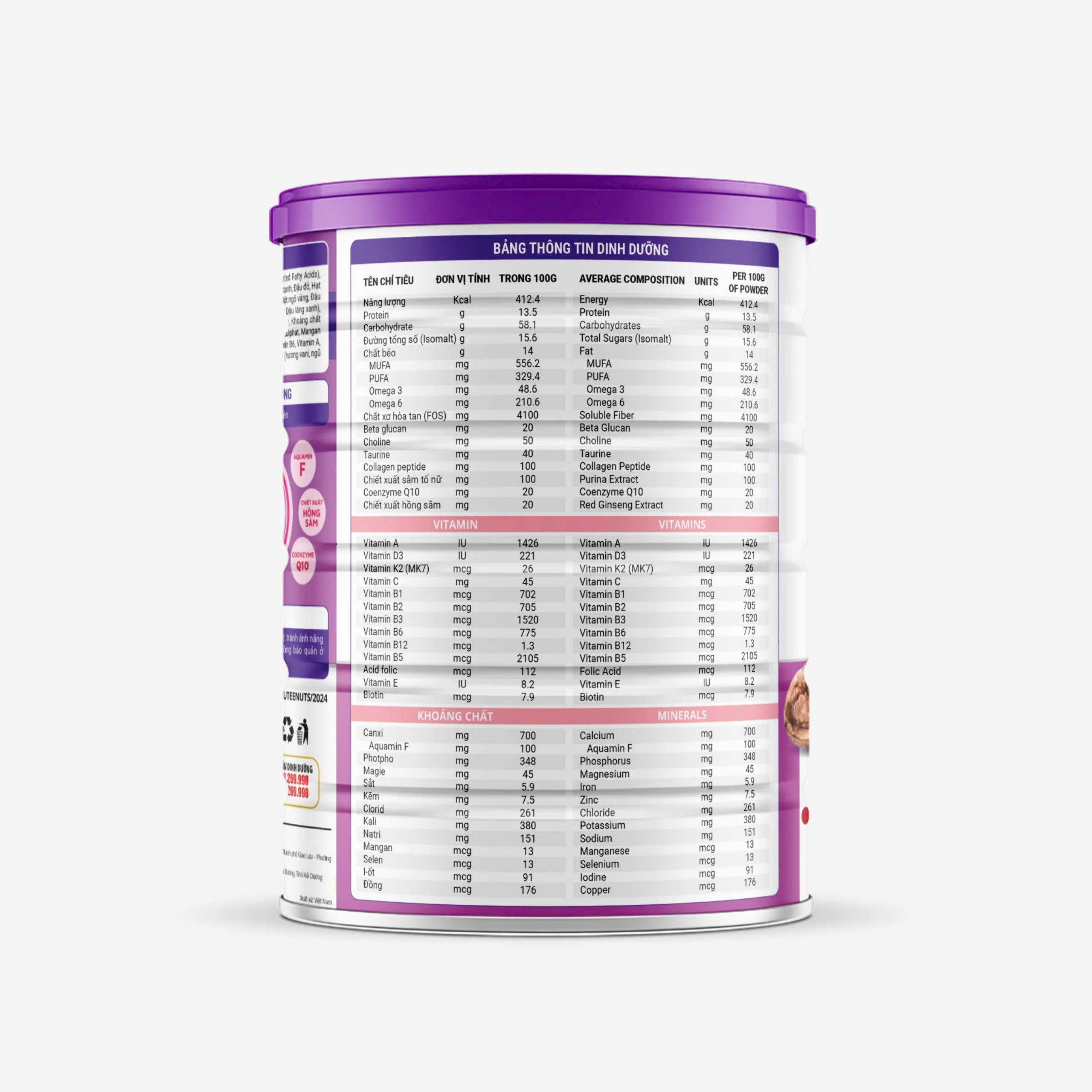 1. Thành phần: Sữa bột, Whey protein, Soy protein, Maltodextrin, Sữa non, L-Lysine HCL, FOS, Canxi Nano, Taurine, Choline, DHA, ARA, Vitamin (Vitamin A, Vitamin C, Vitamin D, Vitamin E, Vitamin D3, Vitamin K2,