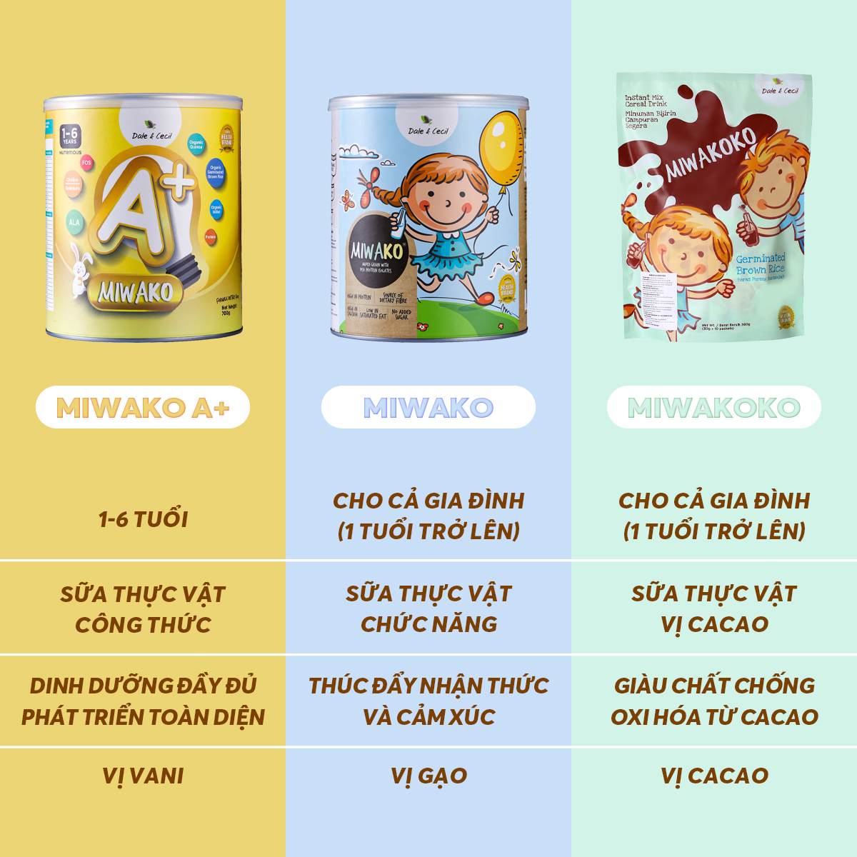 - Sữa miwako dành cho trẻ trên 1 tuổi và dùng được cho cả gia đình