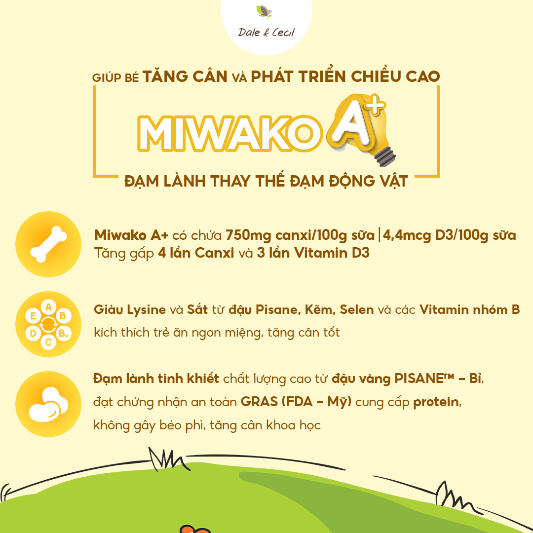 Combo 4 Hộp 400g Sữa Công Thức Hữu Cơ Miwako A+ Vị Vani, Sữa Hạt Cho Bé Phát Triển Trí Não Chiều Cao THÔNG TIN SẢN PHẨM SỮA HẠT MIWAKO A+, SỮA HỮU CƠ CHO