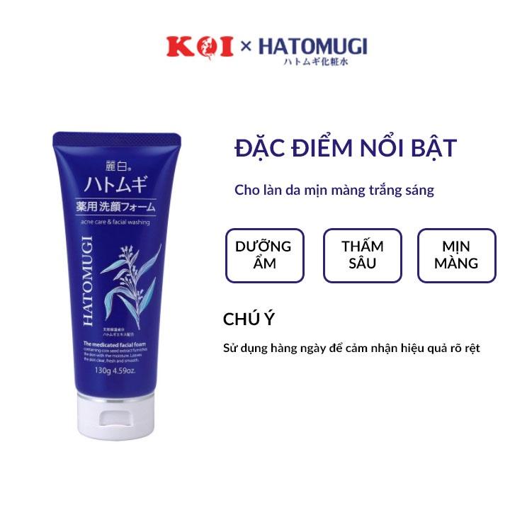 ✨Sữa rửa mặt ngừa mụn, dưỡng ẩm và làm sáng da Hatomugi The Medicated Facial Foam 130g (xanh)