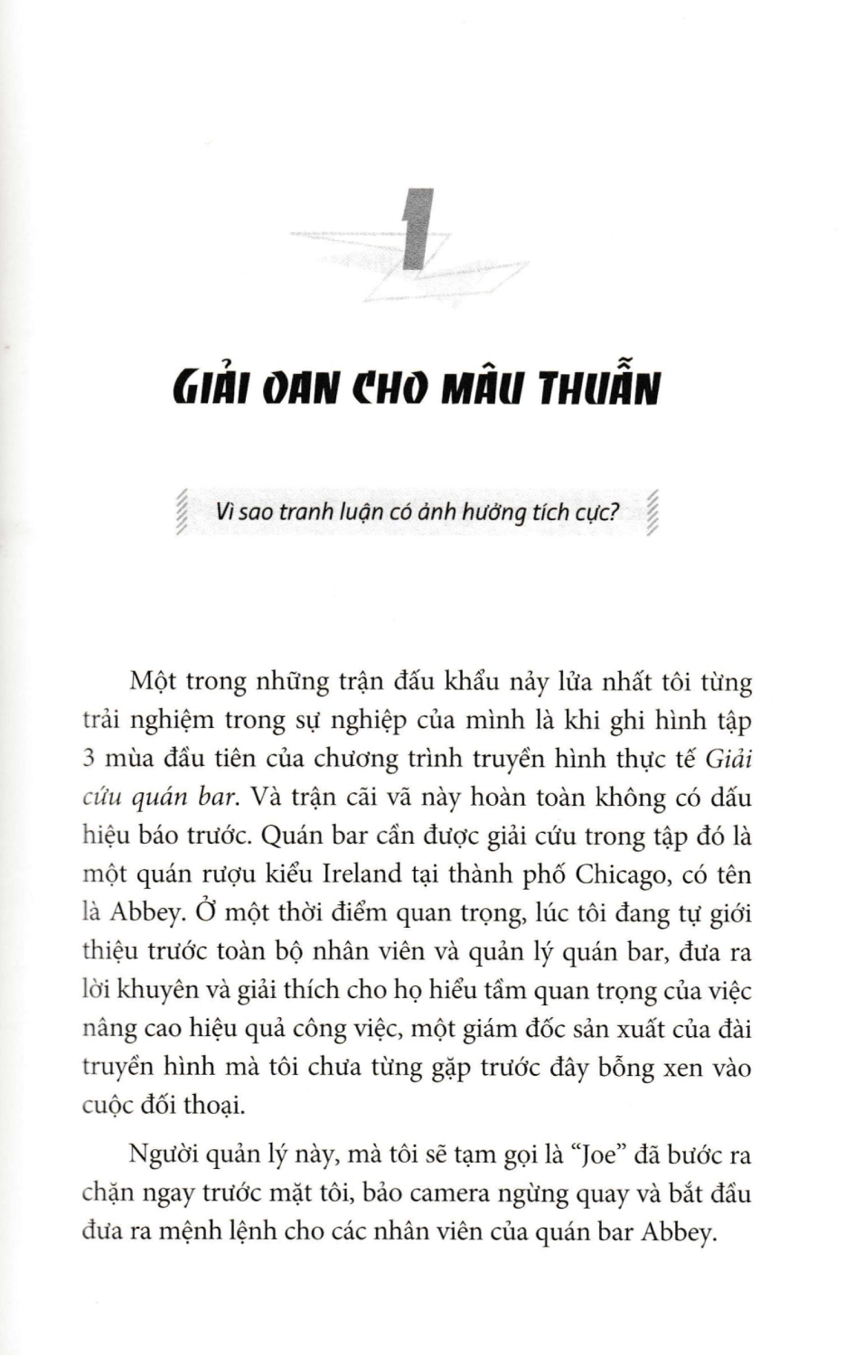 Dù bạn đang quản lý một doanh nghiệp hay chỉ muốn quản lý cuộc đời của chính mình, giữ gìn mối quan hệ tốt đẹp với gia đình, đồng nghiệp, bạn bè, thì bạn vẫn cần biết cách tận dụng mâu thuẫn. Không việc gì phải né tránh nó. Hãy đưa những vấn đề đang bị ẩn giấu ra ánh sáng và tạo ra những thay đổi tích cực. Hãy xả van căng thẳng và dồn năng lượng vào những việc có ích hơn.