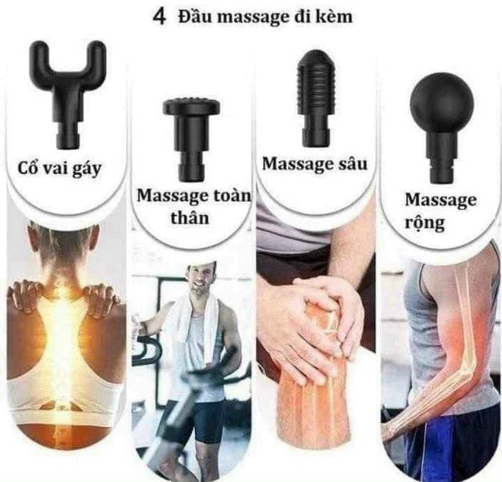 SÚNG MASSAGE CẦM TAY, MÁY MASSAGE CỔ VAI GÁY LOẠI TO, 6 LEVEL 4 ĐẦU MASSAGE Công dụng Và Chức Năng - Đầu massage bóng tiêu chuẩn: thích hợp để massage các lực