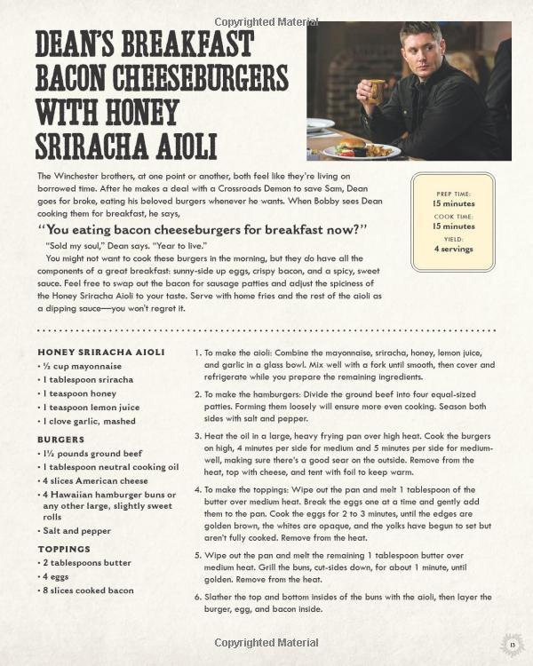 Supernatural: The Official Cookbook: Burgers, Pies And Other (Science Fiction Fantasy) Filled with delicious recipes inspired by the hit television series, this cookbook allows fans to experience the world of Supernatural like never before. Whether you're a