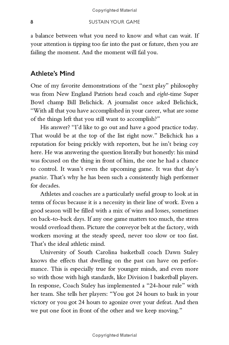 This book is for high performers who want to learn practical strategies and action steps on how to sustain their game across all three timelines. It assembles invaluable advice and lessons from successful athletes, entrepreneurs, social scientists, journalists, CEOs, motivational speakers, business coaches, and consultants, as well as Alan’s own personal stories.