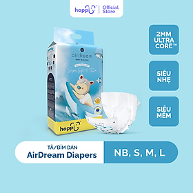 Tã / Bỉm Hoppi AirDream không có lông tơ, không chứa clo và là loại tã mỏng nhất trên thị trường! Được tạo thành từ cấu trúc 7 lớp có độ nén cao, Công nghệ UltraCore 2mm của chúng tôi đưa khả năng hấp thụ lên một tầm cao mới.