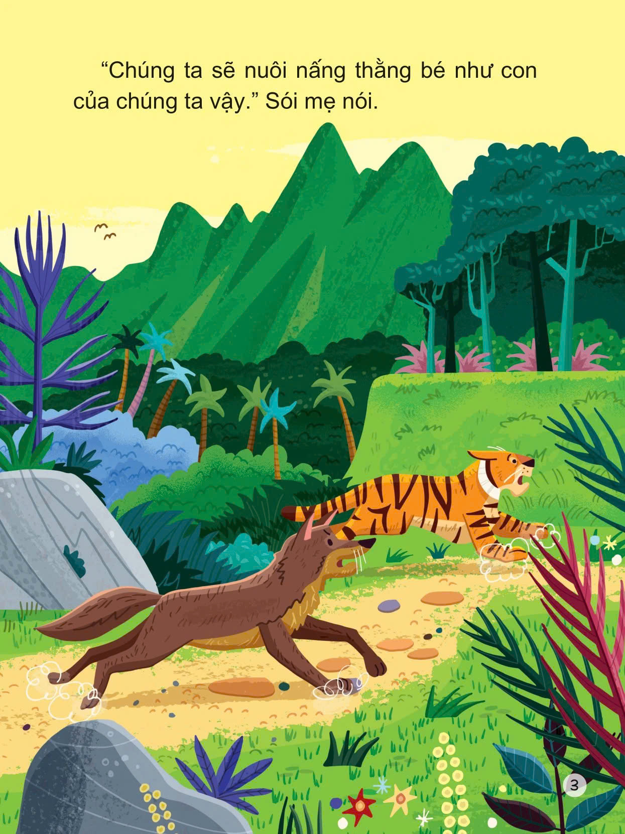 Sói mẹ và Sói bố cứu được một bé trai khỏi con hổ dữ Shere Khan.