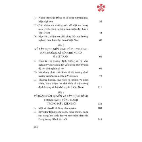Thực hiện Nghị quyết số 37-NQ/TW ngày 09/10/2014 của Bộ Chính trị khóa XI về công tác lý luận và định hướng nghiên cứu đến năm 2030 và Hướng dẫn số 64-HD/BTGTW ngày 10/5/2018 của Ban Tuyên giáo Trung ương về thực hiện Chỉ thị số 23-CT/TW của Ban Bí thư khóa XII về tiếp tục đổi mới, nâng cao chất lượng, hiệu quả học tập, nghiên cứu, vận dụng và phát triển chủ nghĩa Mác - Lênin, tư tưởng Hồ Chí Minh trong tình hình mới; nhằm giúp các cấp ủy đảng, các địa phương triển khai chương trình bồi dưỡng, cập nhật kiến thức cho cán bộ, đảng viên ở cơ sở, Nhà xuất bản Chính trị quốc gia Sự thật phối hợp với Ban Tuyên giáo Trung ương Đảng tái bản cuốn sách "Tài liệu tham khảo bồi dưỡng, cập nhật kiến thức cho cán bộ, đảng viên ở cơ sở". Cuốn sách gồm 6 bài: Bài 1: Chủ nghĩa Mác - Lênin, tư tưởng Hồ Chí Minh, sự vận dụng sáng tạo và phát triển chủ nghĩa Mác - Lênin, tư tưởng Hồ Chí Minh trong sự nghiệp đổi mới ở nước ta hiện nay. Bài 2: Đẩy mạnh công nghiệp hóa, hiện đại hóa ở Việt Nam. Bài 3: Về xây dựng nền kinh tế thị trường định hướng xã hội chủ nghĩa ở Việt Nam. Bài 4: Về đảng cầm quyền và xây dựng Đảng trong sạch, vững mạnh trong điều kiện mới. Bài 5: Về xây dựng Nhà nước pháp quyền xã hội chủ nghĩa ở Việt Nam. Bài 6: Toàn cầu hóa và hội nhập quốc tế của Việt Nam.