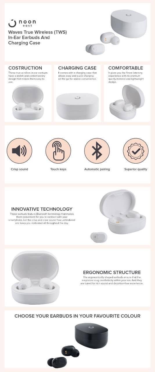 - 02 tai nghe , nút cao su thay thế, cáp sạc, sách hướng dẫn sử dụng, hộp. Màu Sắc : Đen, Trắng.