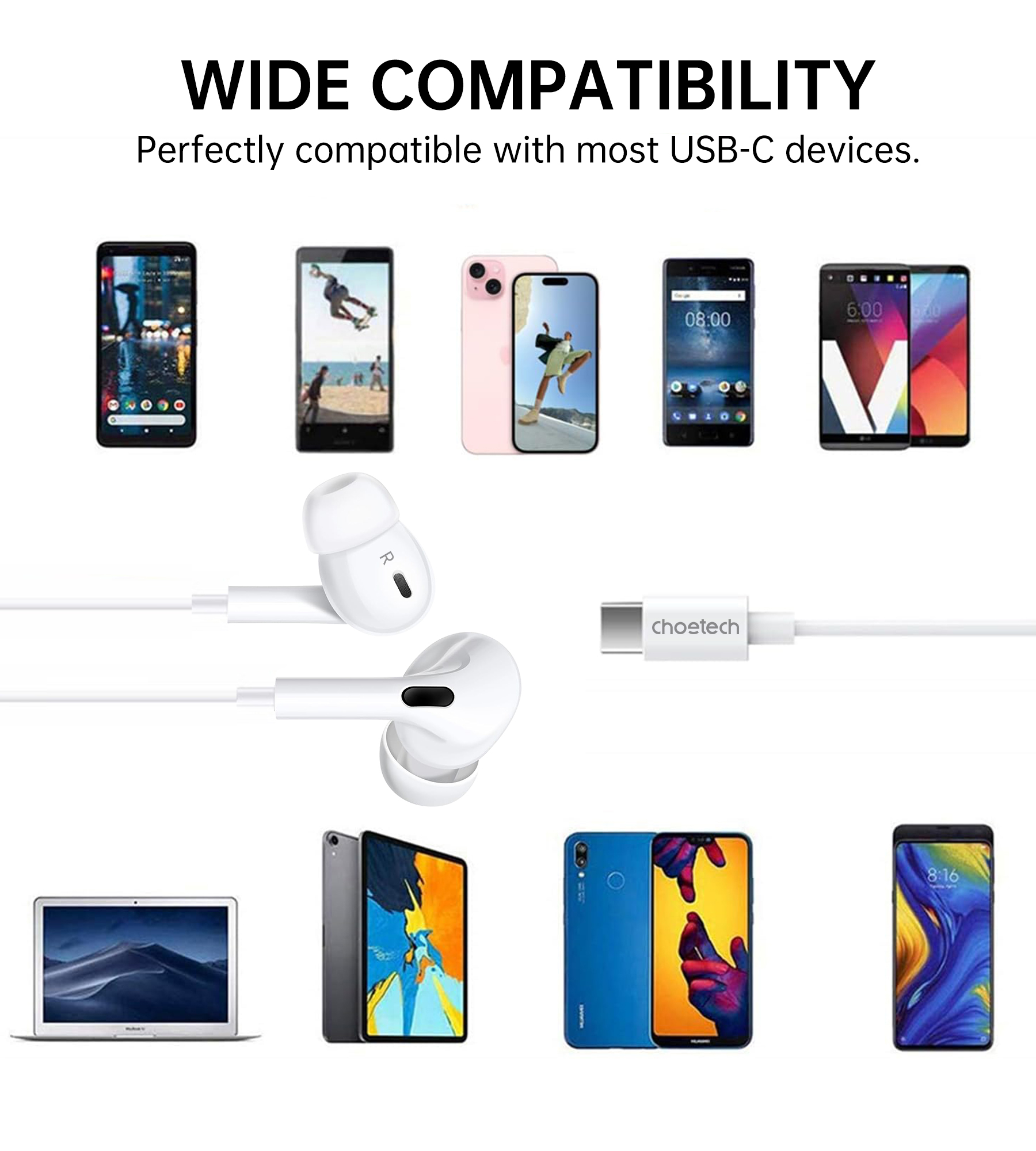 Mua tại TiktokGiới thiệu Tai nghe Choetech OC-A011 dây nhét tai Type C có đệm cao su (Hàng chính hãng)