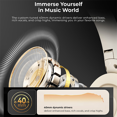 - Kết nối Bluetooth 5.3 – Tín hiệu ổn định, tiết kiệm pin - Âm thanh sống động – Driver 40mm mang đến trải nghiệm chân thực - Thiết kế chụp tai êm ái –