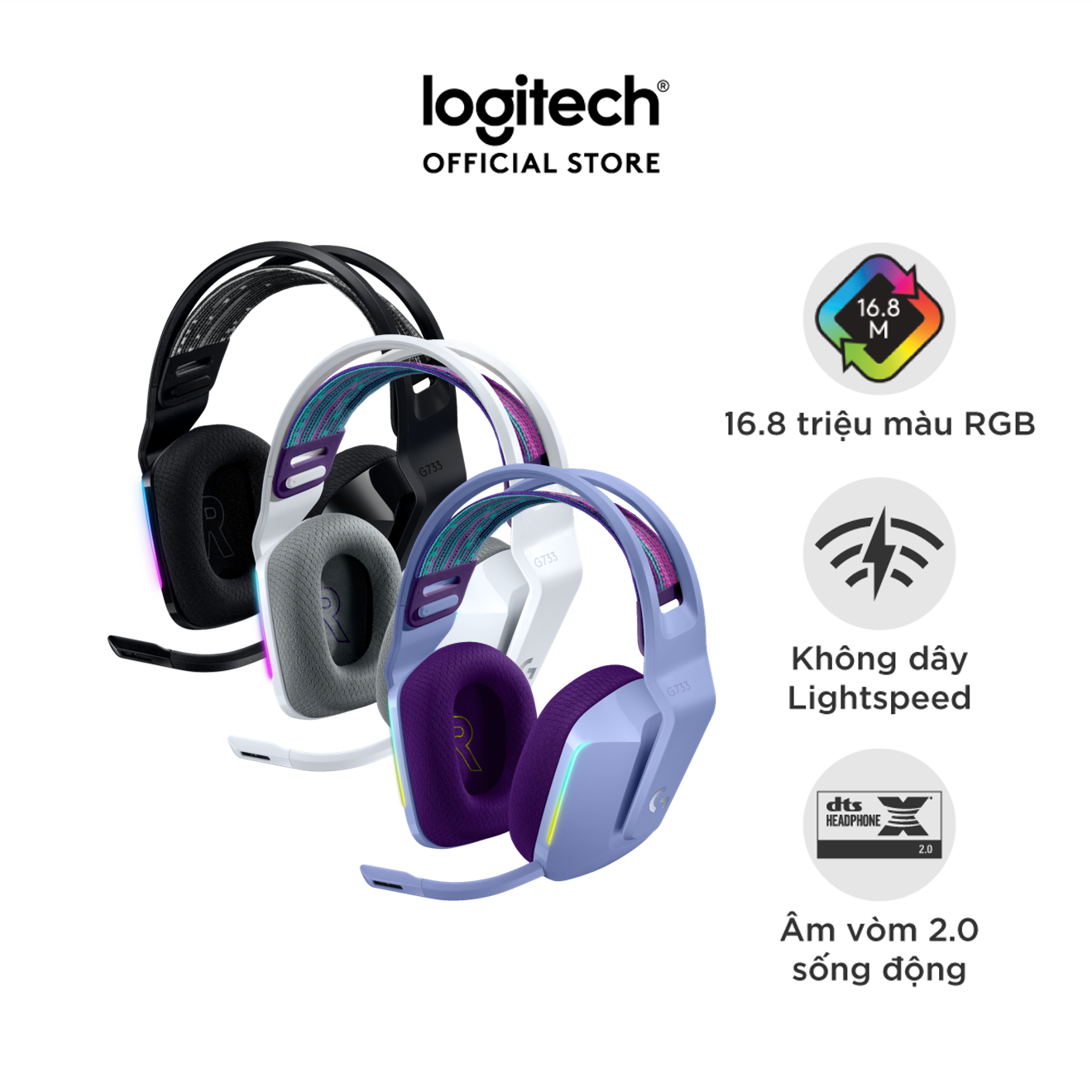 THÔNG TIN SẢN PHẨM TAI NGHE GAMING LOGITECH G733 Tai nghe Gaming Logitech LIGHTSPEED G733 Wireless 7.1 RGB Màng loa Pro-G 40mm cho âm thanh sống động Công nghệ không dây Lightspeed với độ trễ