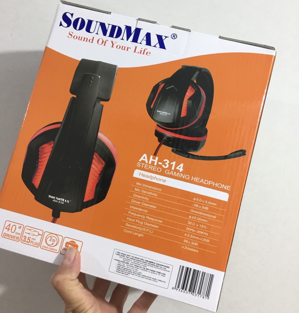 Tai Nghe Gaming Chụp Tai SoundMax AH-314 2.2 mét - Hàng Chính Hãng SoundMax AH-314 là dòng tai nghe chơi game được trang bị driver đường kính đến 40mm với độ lớn âm thanh đạt