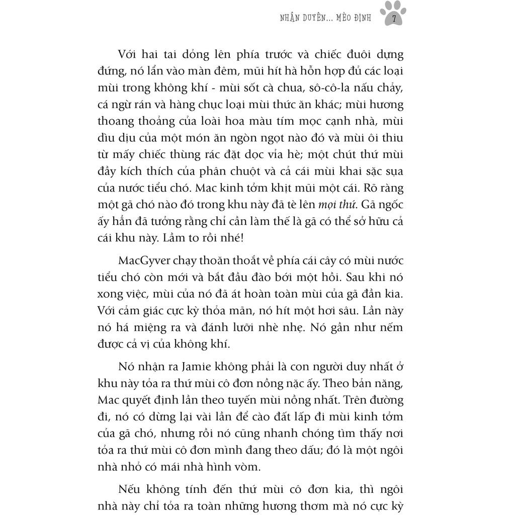 Điều ấn tượng nhất của cuốn sách chính là mạch chuyện thỉnh thoảng được kể từ góc nhìn của chú mèo Mac tinh nghịch với trái tim tràn ngập sự yêu thương. Mac mong cô chủ của nó hạnh phúc, muốn mọi người xung quanh thoát khỏi nỗi buồn và sự cô độc. Với lối kể chuyện hóm hỉnh, và cách xây dựng nhân vật độc đáo, “Nhân duyên Mèo định” không chỉ mang lại những giây phút giải trí mà còn truyền tải nhiều thông điệp ý nghĩa dành cho bạn đọc.