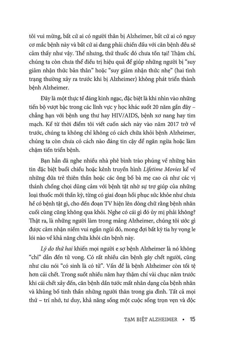 Cuốn sách Tạm Biệt Alzheimer không chỉ có ích cho những người làm chuyên môn, bệnh nhân và gia đình (những người trực tiếp chịu ảnh hưởng của căn bệnh) mà còn có giá trị với bạn đọc nói chung, những người có nguy cơ mắc bệnh, đồng thời cũng là những người đang bị lối sống nhanh thời hiện đại tác động đến sức khỏe mỗi ngày.
