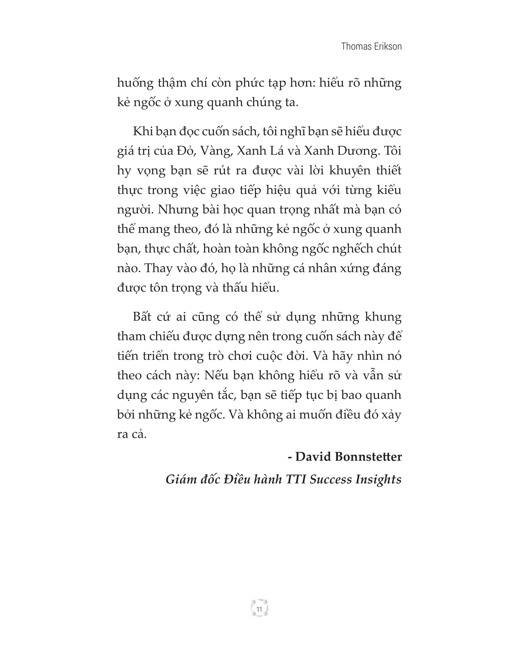 Bất cứ ai cũng có thể sử dụng những khung tham chiếu được dựng nên trong cuốn sách này để tiến triển trong trò chơi cuộc đời. Và hãy nhìn nó theo cách này: Nếu bạn không hiểu rõ và vẫn sử dụng các nguyên tắc, bạn sẽ tiếp tục bị bao quanh bởi những kẻ ngốc. Và không ai muốn điều đó xảy ra cả.