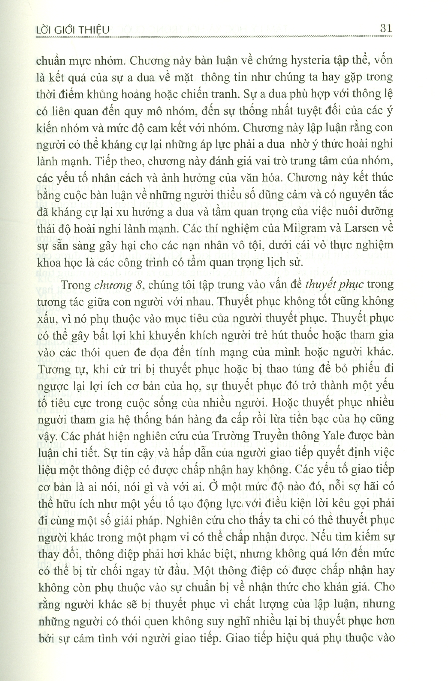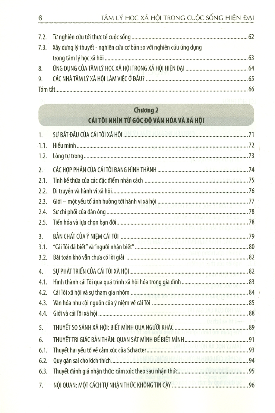 Cuốn sách gồm 11 chương: Chương 1: chuyên ngành tâm lý học xã hội Chương 2: Cái tôi nhìn từ góc độ văn hóa và xã hội Chương 3: Sự hấp dẫn và các mối