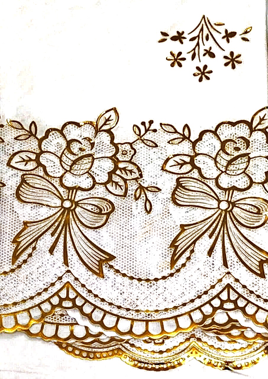 Khăn Trải Bàn PAULEE - WLG 751 kiểu dáng khăn hình chữ nhật kết hợp hoa văn phủ nhũ vàng.