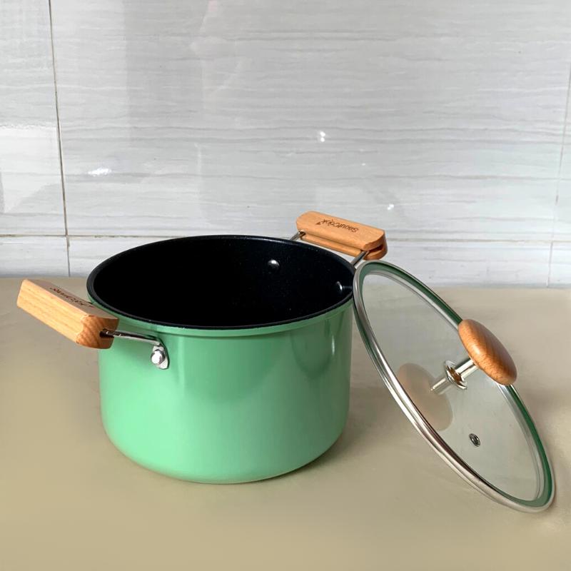 Bộ sản phẩm bao gồm: - 1 Quánh 1 tay cầm đáy từ 16cm Seoulcook Luxury màu xanh oliu + nắp kính 16cm - 1 Nồi 2 tay cầm đáy từ 20cm Seoulcook Luxury màu