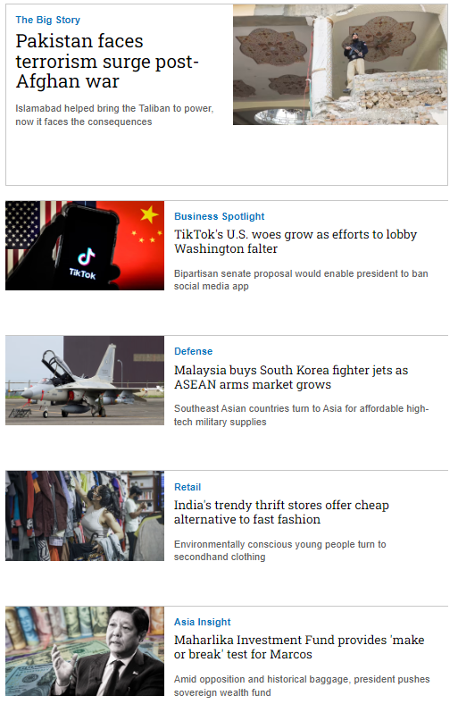 Nikkei Asia là tạp chí bằng tiếng Anh rất uy tín của Nikkei - Nhật Bản, chuyên viết về Xu hướng khu vực châu Á - Thái Bình Dương, Kinh tế, Công nghệ, Chính trị,