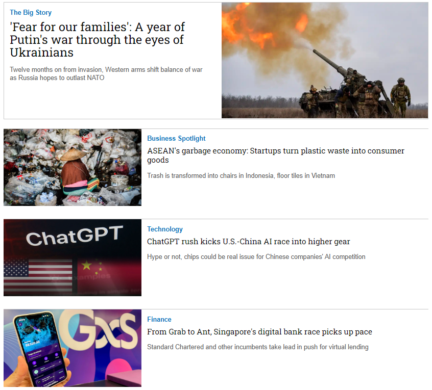 Nikkei Asia là tạp chí tiếng Anh có tên tuổi thuộc tập đoàn Nikkei - Nhật Bản, chuyên viết về những xu hướng kinh tế, công nghệ, chính trị của các nước trong khu vực châu Á - Thái Bình Dương gồm có Việt Nam. Ngoài ra còn cung cấp các phân tích từ chuyên gia, nhà báo về đời sống và văn hóa các nước châu Á. (Trending, Business, Markets,Tech, Politics, Economy, Features, Opinion, Life & Arts).