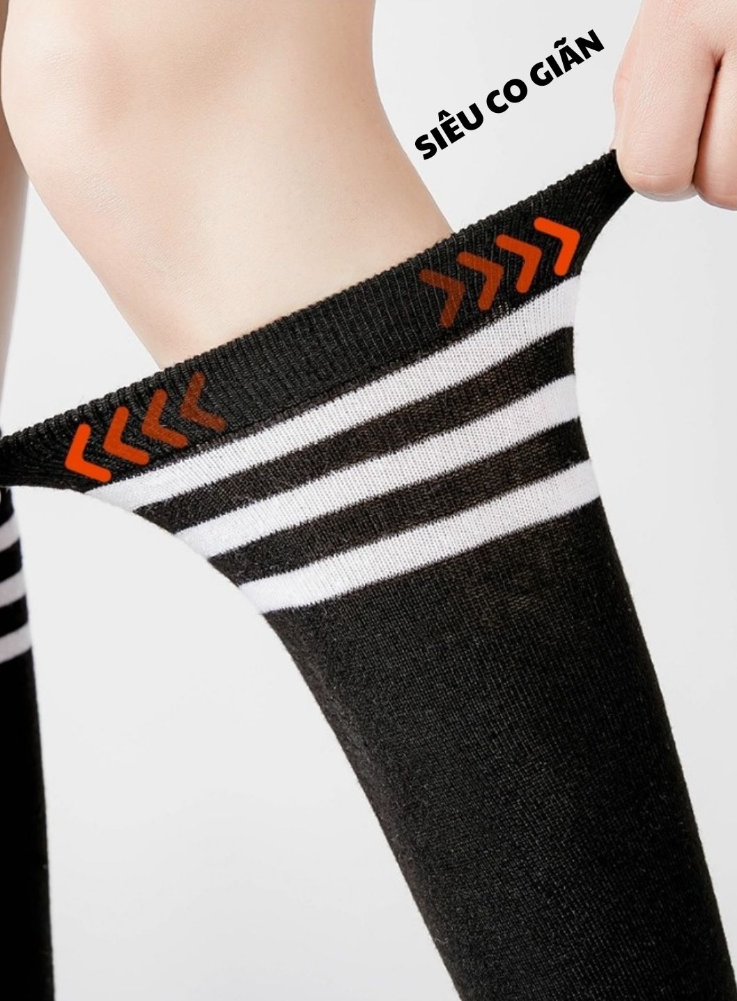 - Tên sản phẩm: Tất đùi hàn quốc sọc trắng đen qua dầu gối