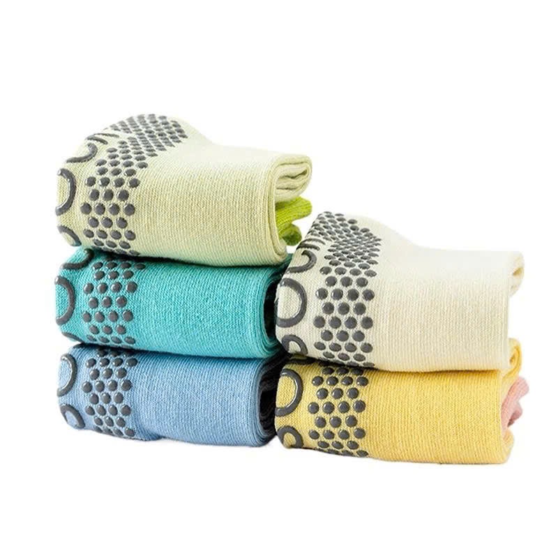 Đế tất được làm từ các hạt PVC chống trượt, có chức năng đệm, hấp thụ sốc và xoa bóp lòng bàn chân tránh bị trượt. Mang tất chống trượt năm ngón của chúng tôi sẽ khiến bạn cảm thấy tự tin, thời trang và được bảo vệ.