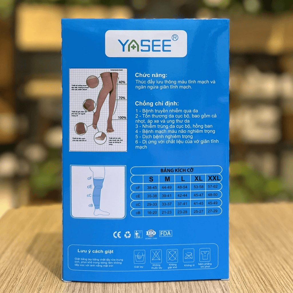 Tăng cường sức khỏe vận động: Giúp chân bớt mệt, giảm đau nhức và tăng độ dẻo dai khi vận động, làm việc. Tóm lại, việc mang vớ Yasee thường xuyên như một thói quen chăm sóc đôi chân khỏe mạnh sẽ giúp phòng tránh nhiều rủi ro do giãn tĩnh mạch gây ra, đồng thời duy trì sự linh hoạt và năng lượng trong sinh hoạt hàng ngày. Tiêu Chuẩn Chứng Nhận Quốc Tế: CE, ISO, KDA/FDA Vớ/tất chống giãn tĩnh mạch Yasee áp dụng công nghệ sản xuất của Mỹ, được giám định và chứng nhận bởi các tổ chức y tế quốc tế uy tín: