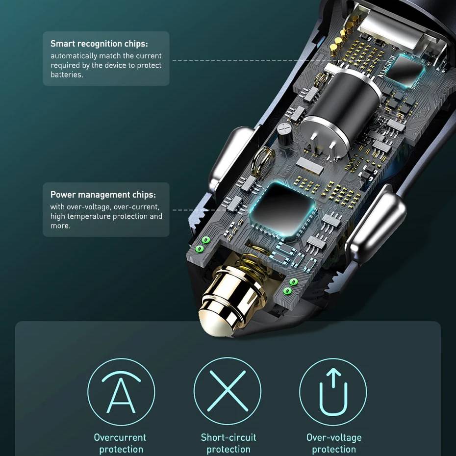1. Professional car charger is designed with advanced technology that offers you and your devices the best protection. Our safety system protects your devices from short circuit, overvoltage and other risks. Just rely on UGREEN