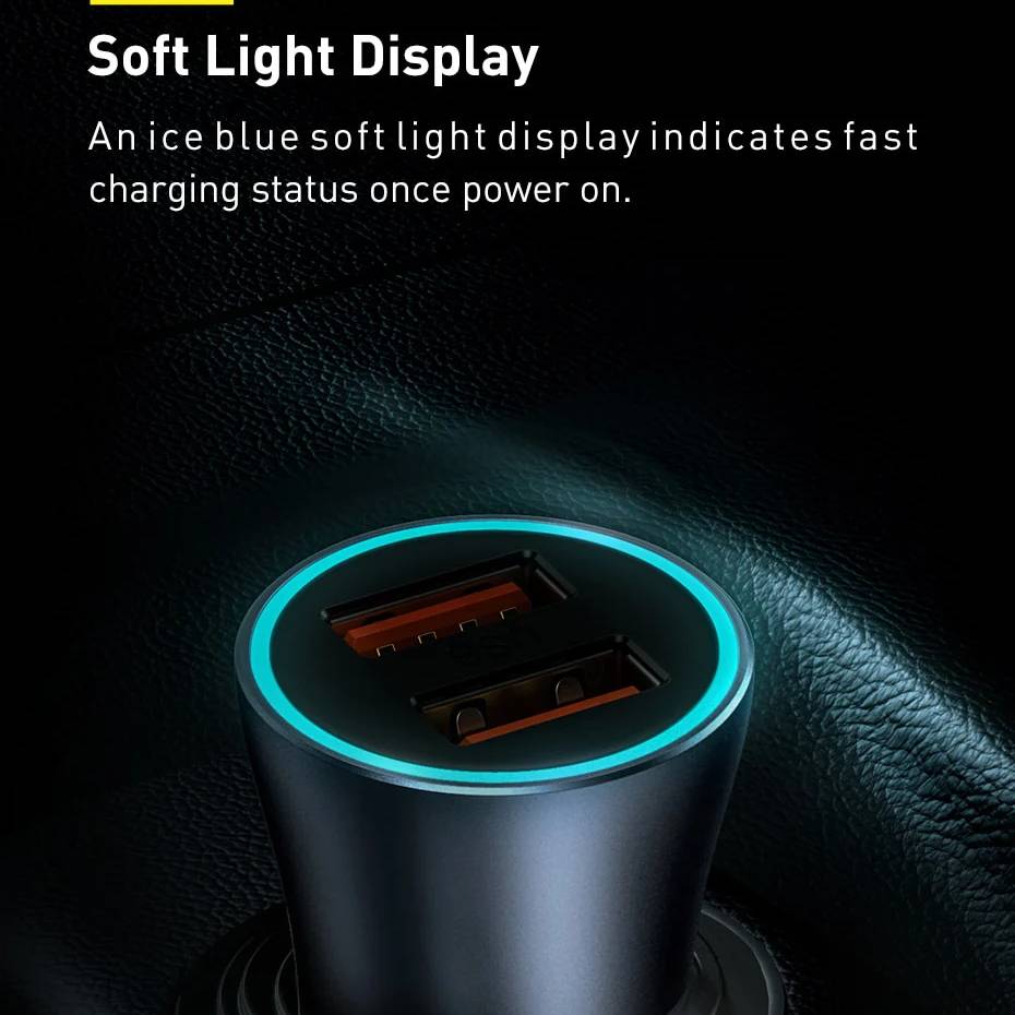 Tẩu sạc ô tô sạc nhanh 40W đa năng cho xe hơi / xe ô tô trang bị cổng Type-C PD và USB hiệu Baseus Goldern Contactor Pro Trang bị đèn led đổi màu khi sạc đầy, giúp bạn dễ dàng theo dõi quá trình sạc.