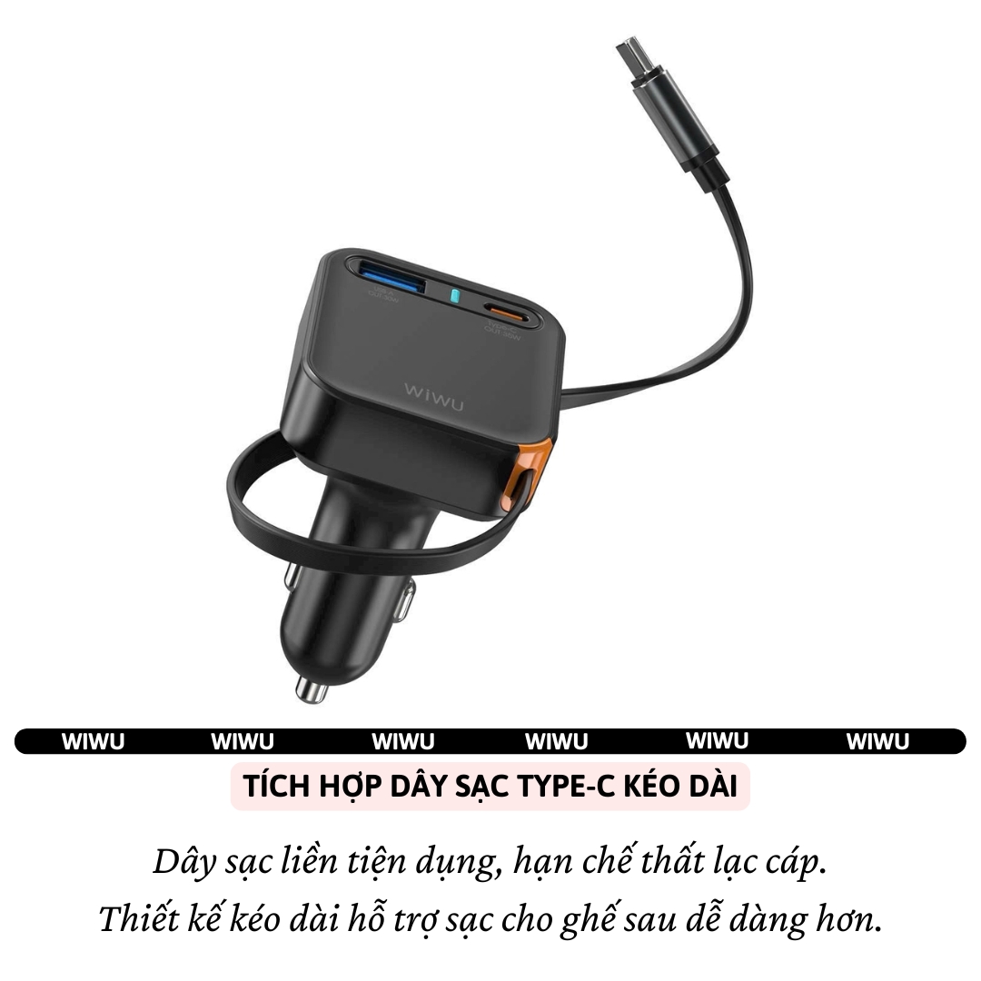 Bộ sạc xe hơi Wiwu 3 In 1 Car Charger Dual USB C + USB A Thương hiệu: Chất liệu: ABS + hợp kim kẽm Đầu vào: DC12-24V Đầu ra (USB): 5V 3A/9V-3A/12V-25A ( Tối