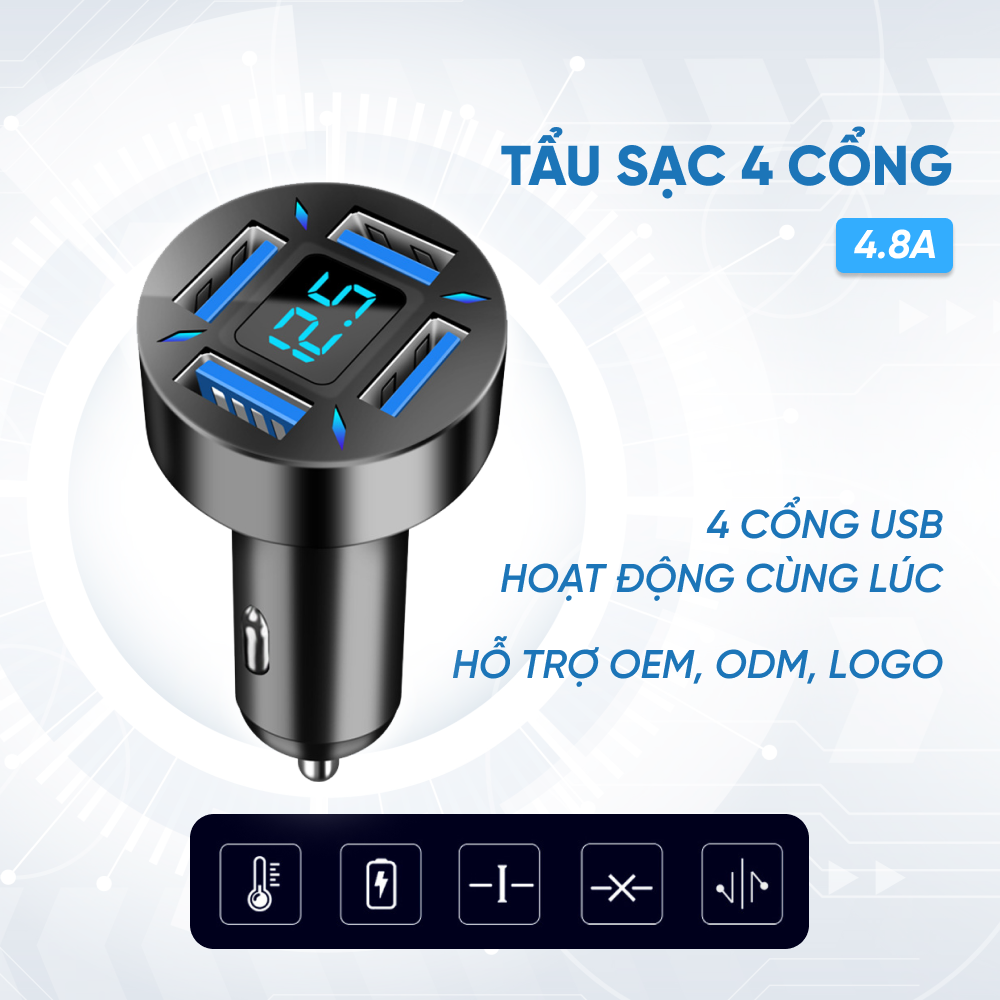 Tẩu Sạc 4 Cổng USB 4.8A THÔNG TIN SẢN PHẨM:
