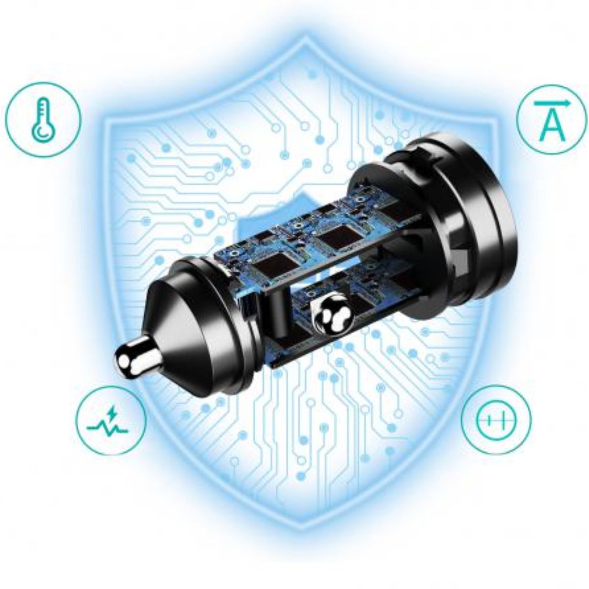 – Công nghệ hiện đại của thương hiệu lớn này đã được khẳng định tên tuổi trên thị trường quốc tế mang lại nhiều tính năng an toàn cho người sử dụng. Sạc điện thoại trên xe hơi của CHOETECH với thiết kế nhỏ gọn nhưng đầy mạnh mẽ và tiện dụng với hai cổng kết nối giúp bạn sạc cả hai thiết bị cùng lúc. Kèm với đó là đèn led chạy vòng thông báo thiết bị đang được cấp nguồn hoặc kết nối với các thiết bị khác càng tăng thêm tính thẩm mỹ và sang trọng trong thiết kế. Nếu bạn là người phải thường xuyên sử dụng các sản phẩm công nghệ hay smart-phone và di chuyển nhiều mà không gần nguồn điện thì tẩu sạc xe hơi CHOETECH TC0014 thật sự là một người bạn đồng hành không thể thiếu.