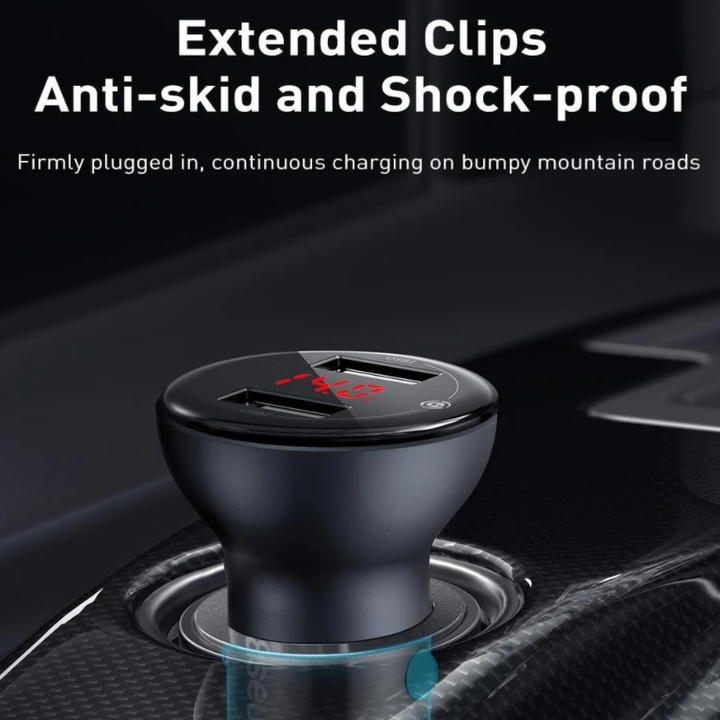 Tẩu sạc nhanh đa năng Baseus TZCCBX-B0G - Sản phẩm có thiết kế hiện đại với 2 cổng sạc USB và còn được trang bị đồng hồ LED báo thông số dòng điện, điện