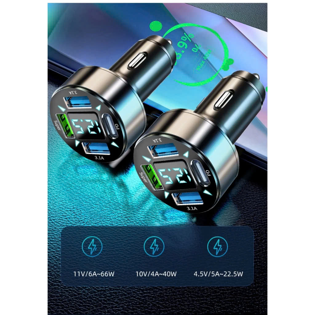 Tên sản phẩm - Sạc nhanh PD66W Màn hình kỹ thuật số 3.1A sạc ô tô bốn trong một Chất liệu sản phẩm - Hợp kim nhôm ABS Trọng lượng sản phẩm “ 26G Kích