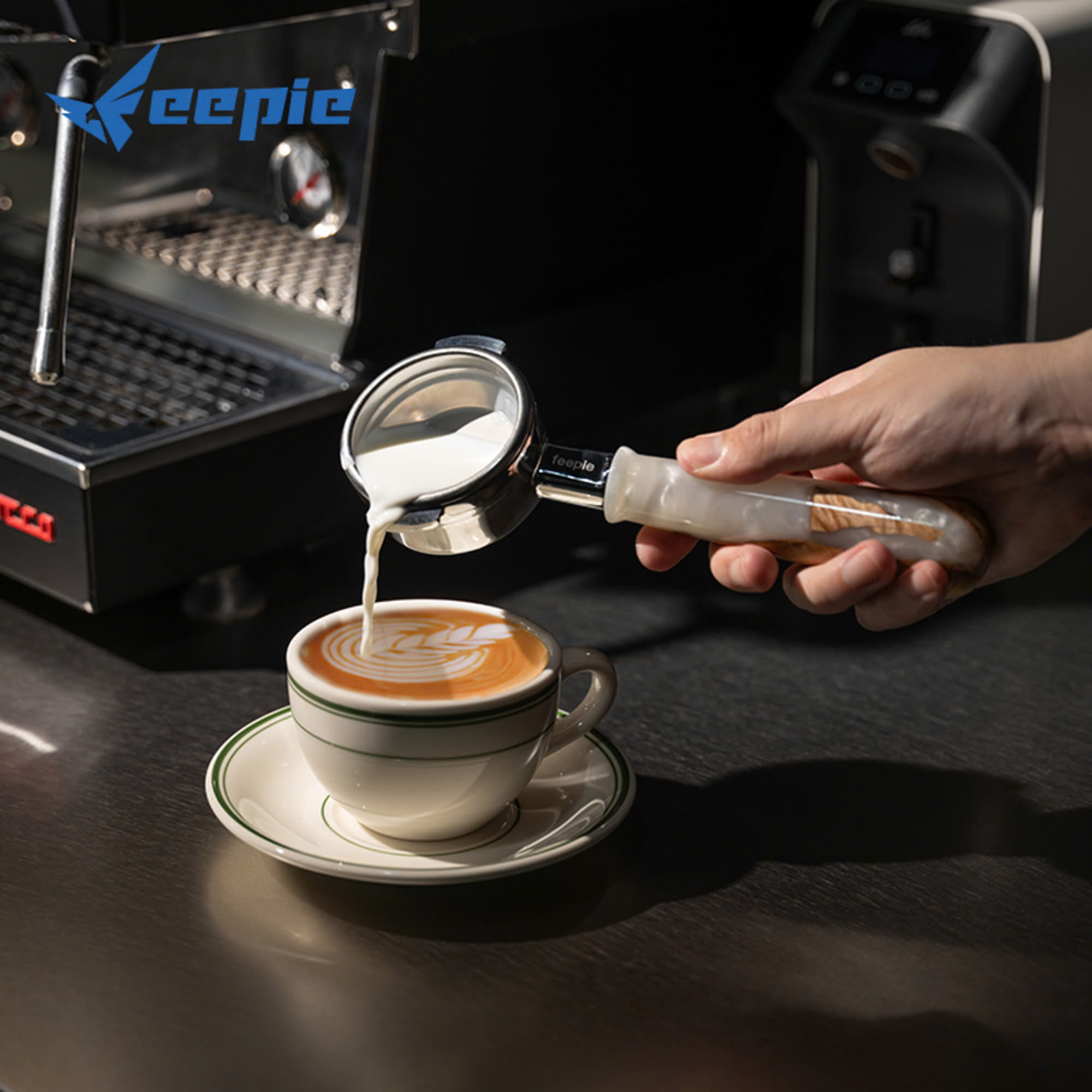 TAY CẦM ESPRESSO KHÔNG ĐÁY VÂN GỖ TỰ NHIÊN FEEPIE Sự kết hợp tuyệt vời giữa gỗ óc chó và nhựa cao cấp mang đến cho bạn trải nghiệm pha chế espresso đẳng cấp. Tay