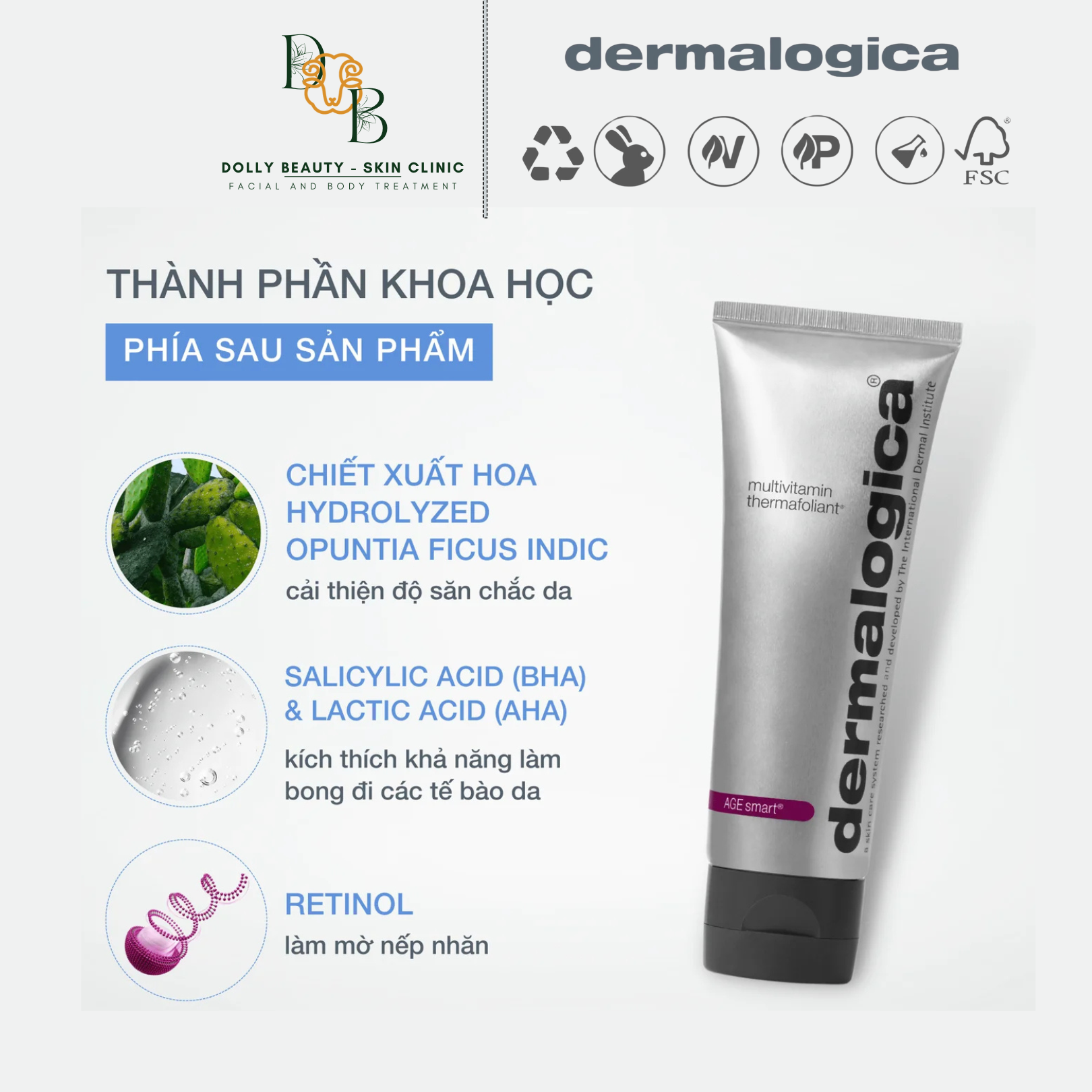 Tẩy da chết bằng nhiệt giúp truyền tiếp các thành phần chống lại lão hoá cho da. Giải pháp đánh bóng da quyền năng này kết hợp các chất tẩy tế bào chết dạng vật lý và hóa học giúp cải thiện kết cấu da một cách nhẹ nhàng và tăng cường cung cấp vitamin. Các vi hạt với tính năng tái tạo bề mặt nhẹ nhàng đánh bong các tế bào da xỉn màu, để lộ làn da mịn màng, tươi tắn hơn ngay lập tức. Công nghệ nhiệt độc đáo kích hoạt ngay khi tiếp xúc với nước để kích thích khả năng làm bong đi các tế bào da của Axít Lactic, Axít Salicylic và Retinol trong khi các chất chống oxy hóa giúp cân bằng da và làm đều màu da. Da cảm thấy và trông được cải thiện đáng kể và mịn màng hơn.