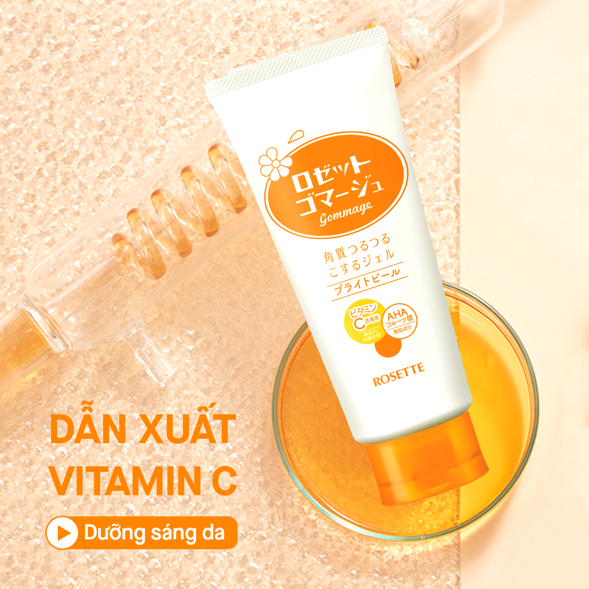 Gel Tẩy Tế Bào Chết Rosette Gommage Bright Peel Dưỡng Sáng Da 180g Thành Phần Chính Và Công Dụng: - Tẩy tế bào chết dạng gel với AHA chiết xuất từ 3 loại axit trái