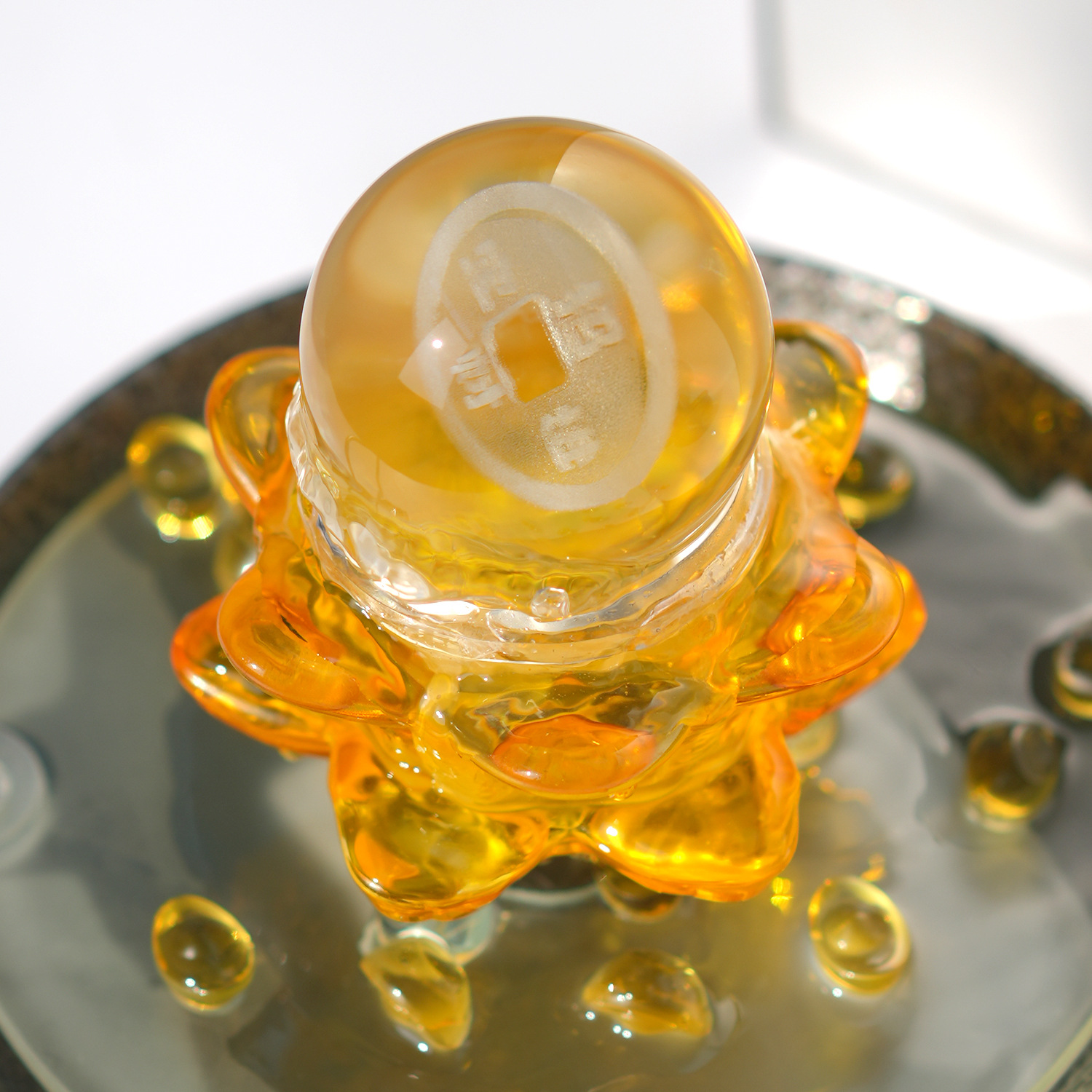 Sản phẩm thủ công , thiết kế với mạch nước chảy phun từ dưới lên đài hoa sen truyền đến ngọc thủy tinh khắc hoa văn đồng xu bên trong.Khi hoạt động ngọc xoay tròn tạo nên nguồn năng lượng tốt. Điều hòa và tăng Tài Khí cho gia chủ.