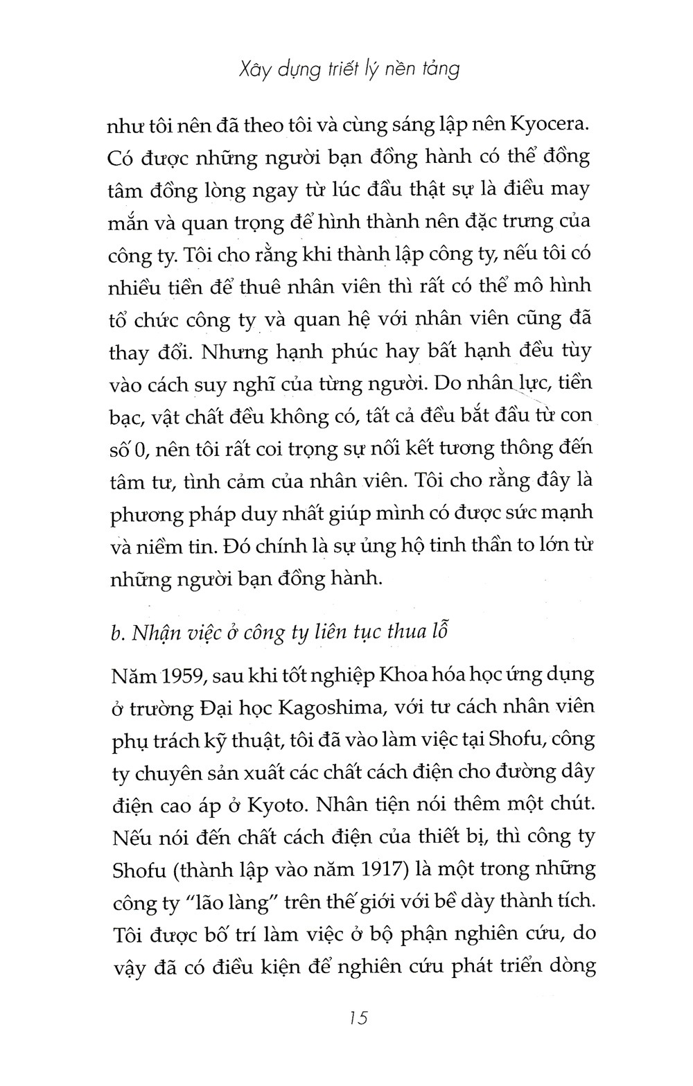Cuốn sách này được viết lên để trình bày về triết lí và phương thức kinh doanh của Inamori Kazuo qua những kinh nghiệm đúc kết được trong quá trình sáng lập nên Kyocrea. Năm 1997, cuốn này đã được xuất bản với tên gọi “Kính Thiên Ái Người”. Qua việc trình bày con đường hình thành và phát triển của Kyocera cũng như những tư tưởng và triết lý của cá nhân tác giả, cuốn sách đã được nhiều độc giả đón nhận như là một cuốn “cẩm nang bỏ túi” về nghệ thuật kinh doanh. Ông đã nhận được lời đề nghị về việc chỉnh sửa từ Nhà xuất bản PHP khi phát hành bản mới nên ông cũng đã đọc kỹ lại bản thảo lần đầu. Inamori Kazuo cảm thấy rằng nên bổ sung để cuốn sách hoàn chỉnh hơn. Không chỉ làm sao để người đọc có thể kinh doanh tốt mà còn làm sao để cho họ có thể sống một cuộc đời có ý nghĩa hơn, không chỉ làm sao để xã hội phát triển mà việc tạo ra một cuộc sống tuyệt vời cho mỗi cá nhân cũng rất cần thiết. Ông đã nghĩ như vậy. Ông cũng lo ngại những điều tôi trình bày sẽ khiến mọi người hiểu lầm, nghi ngờ về sự chính xác, đáng tin cậy. Tuy nhiên, cuốc sách này có thể coi là cuốn bí quyết “Công thức thành công”. Nói quá lời thì nó không phải là cuốn “Kinh thánh” nhưng cũng nên coi đó là “kim chỉ nam” cho việc kinh doanh và sẽ có ít nhiều cho cuộc đời của những ai đọc nó.