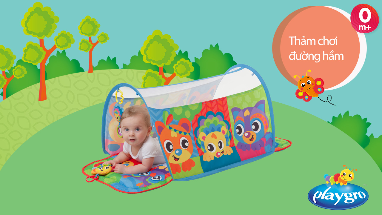 Đặc điểm Thảm chơi đường hầm Playgro Honey Bee Bear Activity Tunnel Gym: