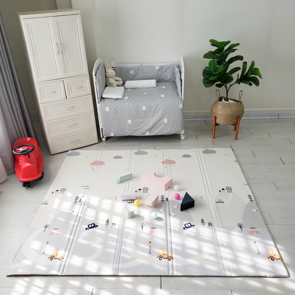 Thảm có 2 mặt với 2 hình khác nhau và có thể gấp gọn mang đi khắp mọi nơi, không tốn diện tích