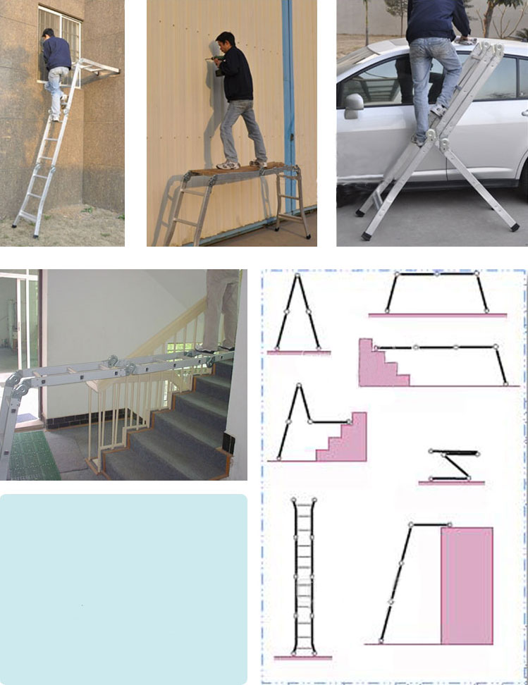 Thang nhôm gấp 4 khúc khóa sập tự động được sử dụng trong nhiều công việc khác nhau, như: