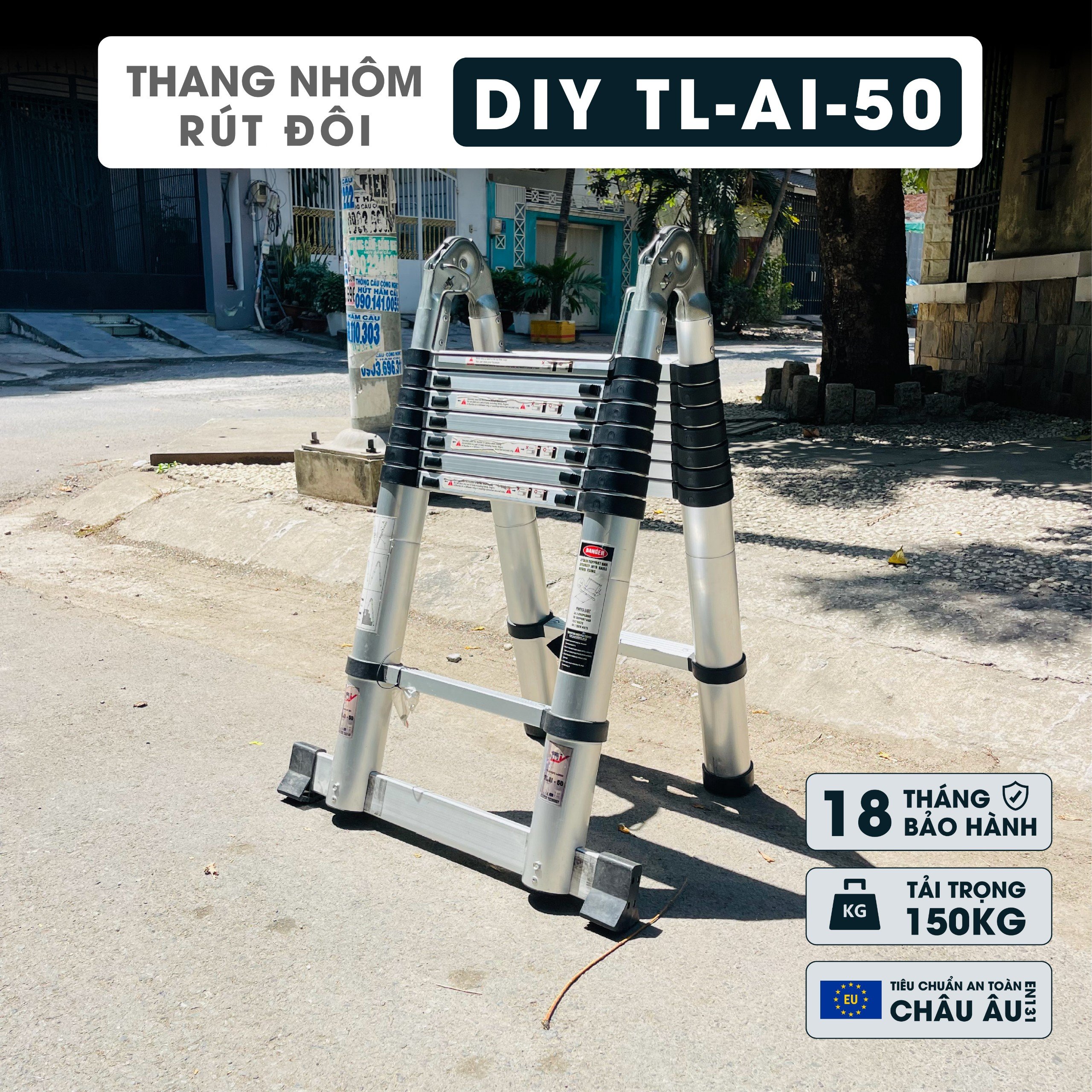 ✨Thang nhôm rút đôi DIY TL-AI-50 chiều cao sử dụng tối đa chữ A 2.4m chữ I 5.0m - Tiêu chuẩn chất lượng an toàn Châu Âu