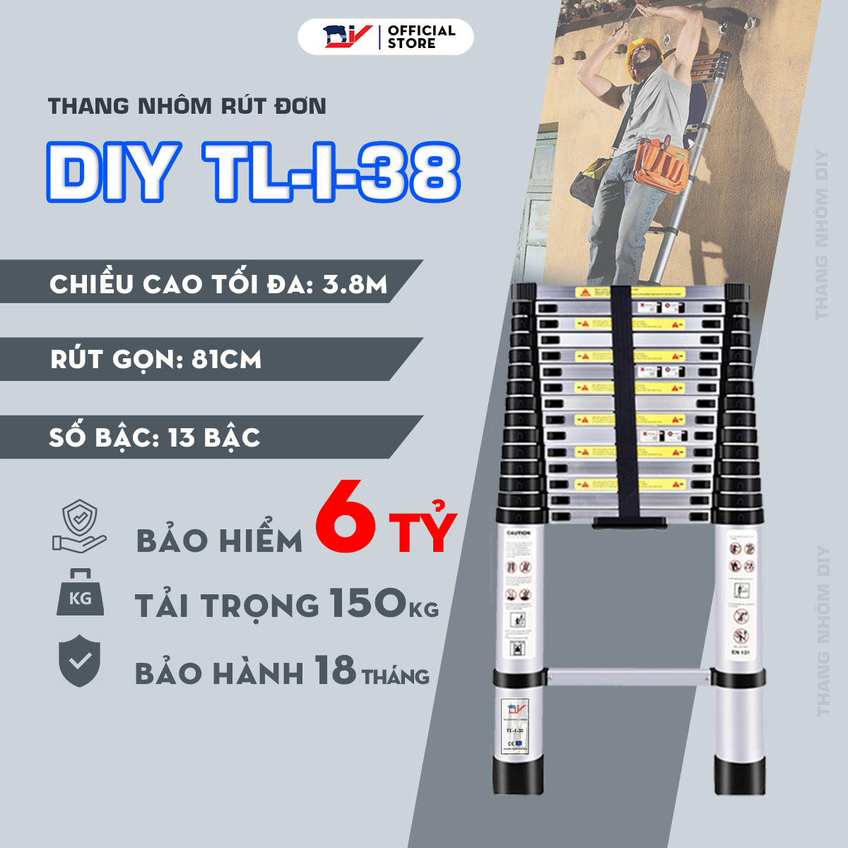 Thang nhôm rút đơn DIY TL-I-38 là loại thang nhôm được DIYhomedepot sản xuất dưới quy trình công nghệ Châu Âu. Là thương hiệu thang nhôm của Việt Nam, DIY tự hào trong việc sản