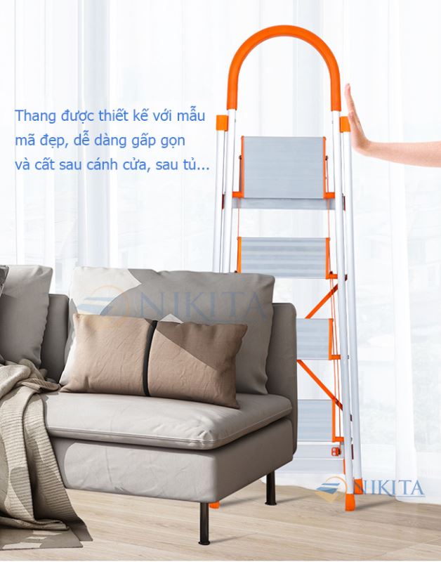 Thang được thiết kế với mẫu mã đẹp, rất tiện lợi cho gia đình, dễ dàng cất gọn sau cánh cửa, sau tủ hay gầm giường…