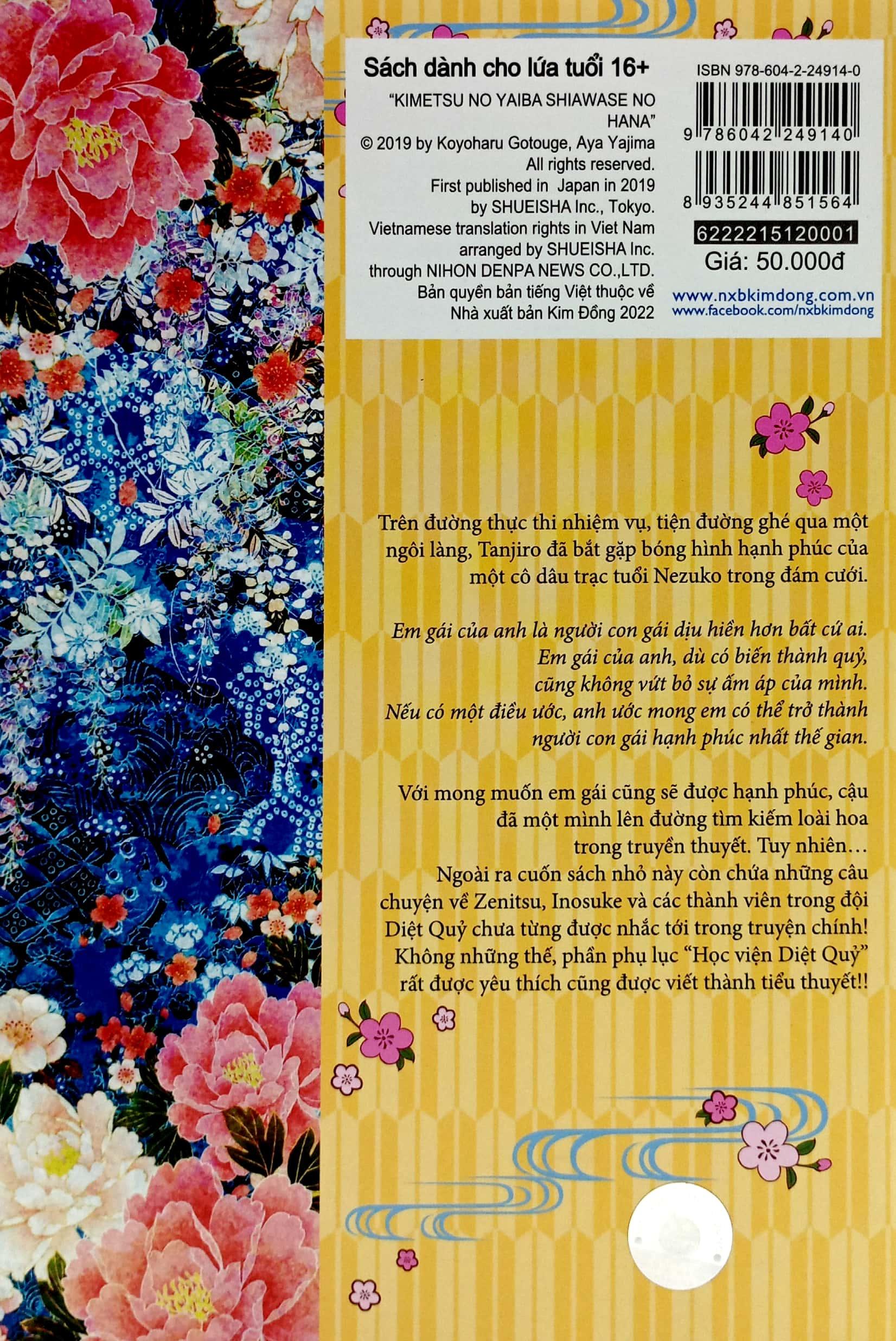 “Đóa hoa hạnh phúc” là tiểu thuyết chuyển thể đầu tiên của bộ truyện tranh đình đám Nhật Bản: “Kimetsu no Yaiba - Thanh gươm diệt quỷ”!! Tuy ra mắt không lâu, nhưng series tiểu thuyết này cũng đã nhanh chóng công phá các bảng xếp hạng tại Nhật với con số lên tới hàng triệu-bản-in!!