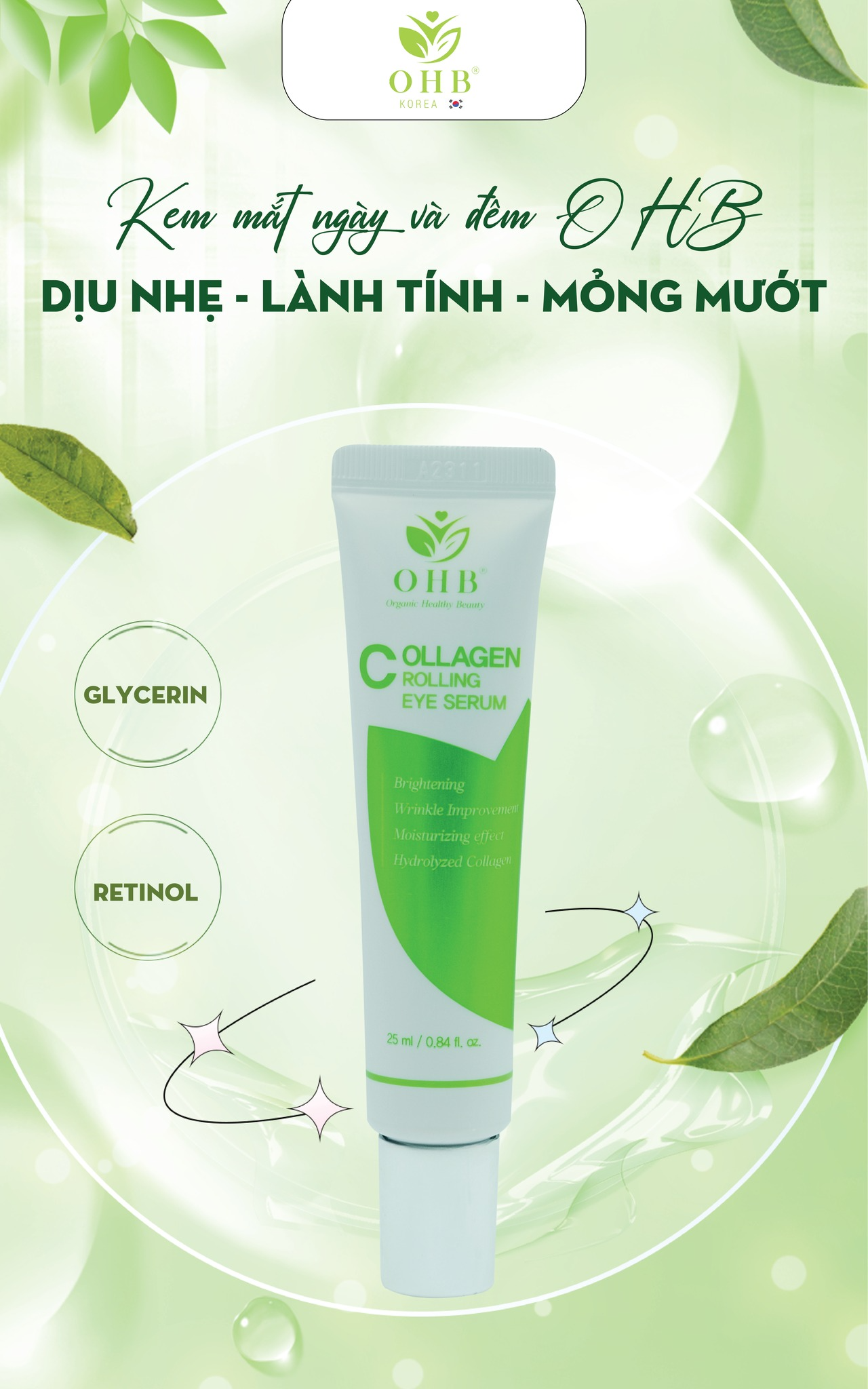 Thanh lăn dưỡng mắt Collagen Rolling Eye Serum OHB • Công dụng: - Làm giảm thâm, nhăn, bọng mắt. - Làm chậm quá trình lão hóa cho vùng da dưới mắt sau tuổi 25, giúp