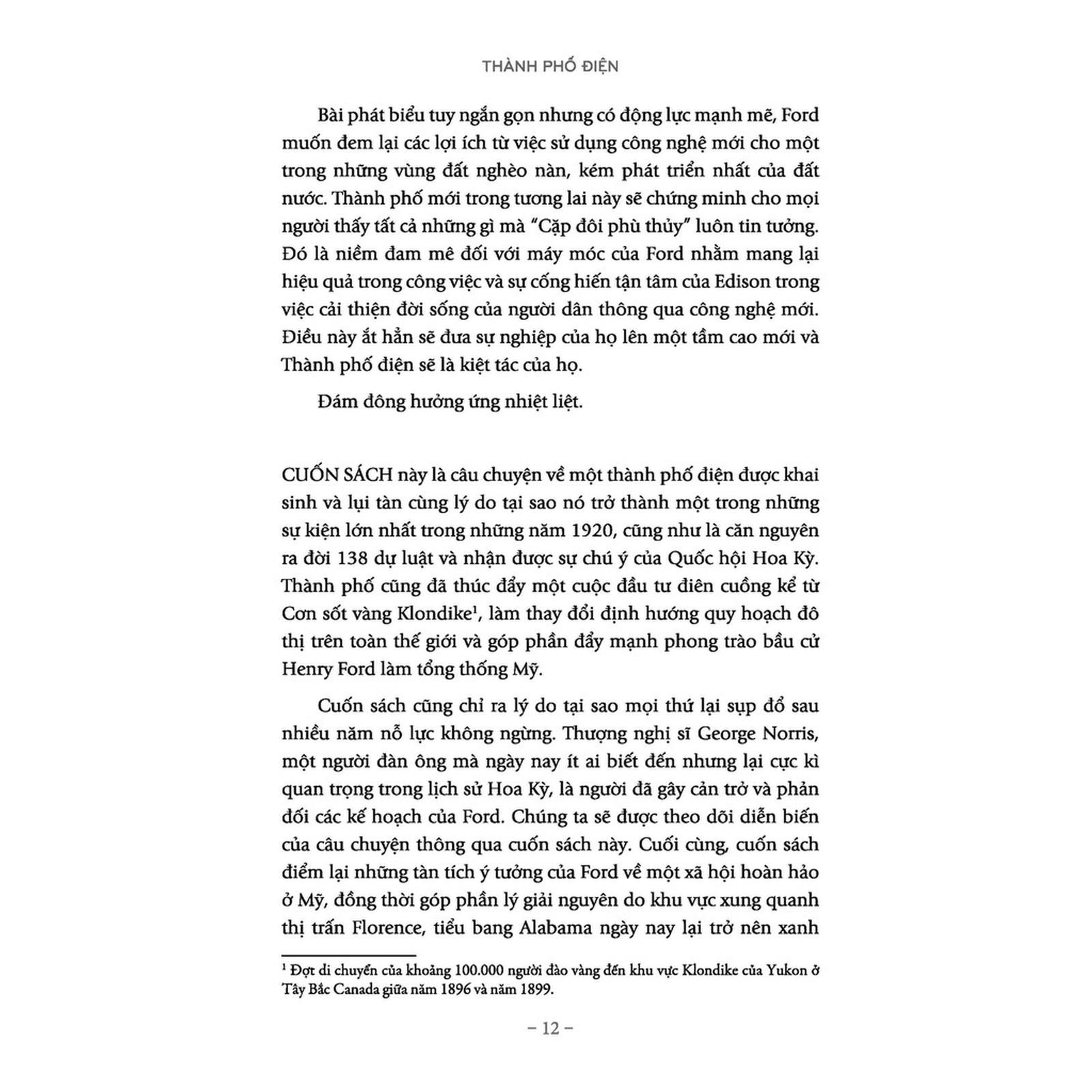 Cuốn sách là một câu chuyện phi thường, chưa được biết đến về hai người khổng lồ trong lịch sử Hoa Kỳ và nỗ lực của họ để tạo ra một thành phố điện bên sông Tennessee. Trong những năm 1920, hai trong số những người đàn ông được kính trọng và có ảnh hưởng nhất trong giới kinh doanh Mỹ, Henry Ford và Thomas Edison, đã đề xuất biến một trong những vùng nghèo nhất của đất nước thành một đô thị công nghệ trong mơ, một thiên đường tỏa sáng của những trang trại nhỏ, những nhà máy khổng lồ và những phòng thí nghiệm lấp lánh. Nó sẽ có diện tích gấp mười lần Manhattan, được cung cấp năng lượng tái tạo và không bị ô nhiễm không khí. Đồng thời, nó sẽ định hình lại xã hội Mỹ, người dân đi lại bằng ô tô, sử dụng một loại tiền tệ mới gọi là “đô la năng lượng” và làm tê liệt sự phát triển của chủ nghĩa xã hội.
